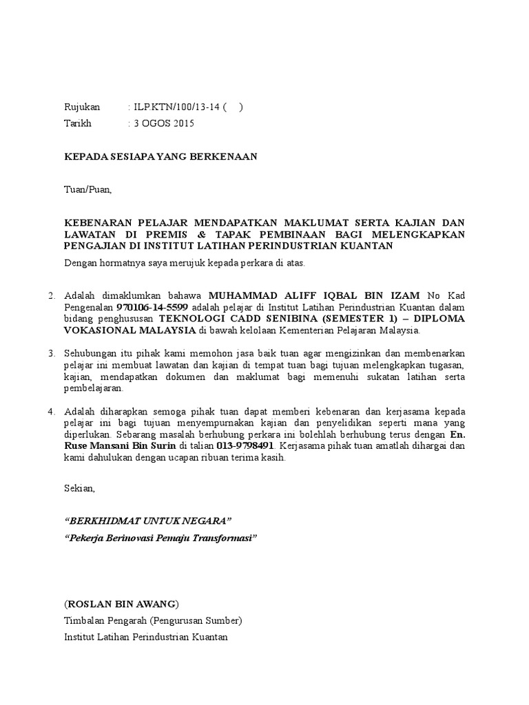 Gambar Contoh Surat Memohon Kebenaran Membuat Lawatan Terbaru 2019. Kerja kursus geografi pt3 2018 contoh jawapan beserta panduan cara buat folio tugasan pengenalan kerangka isi kandungan. Contoh surat lamaran kerja I.